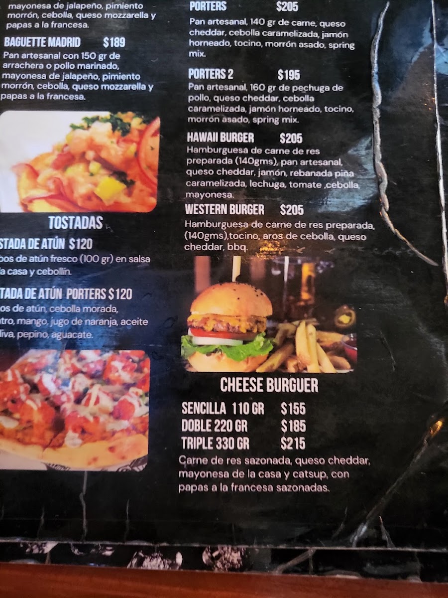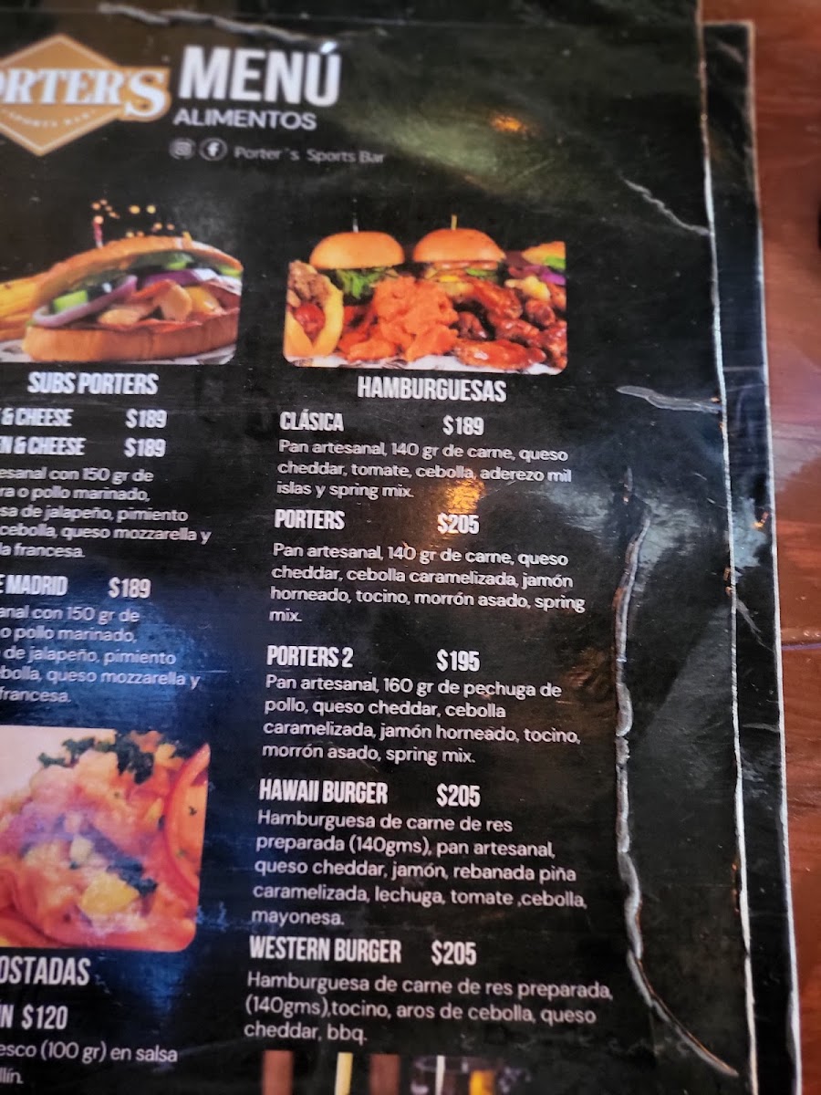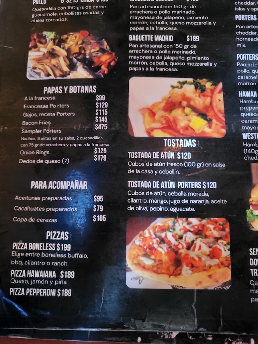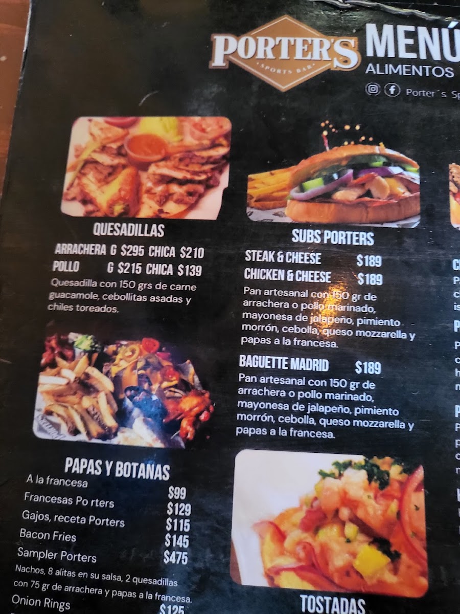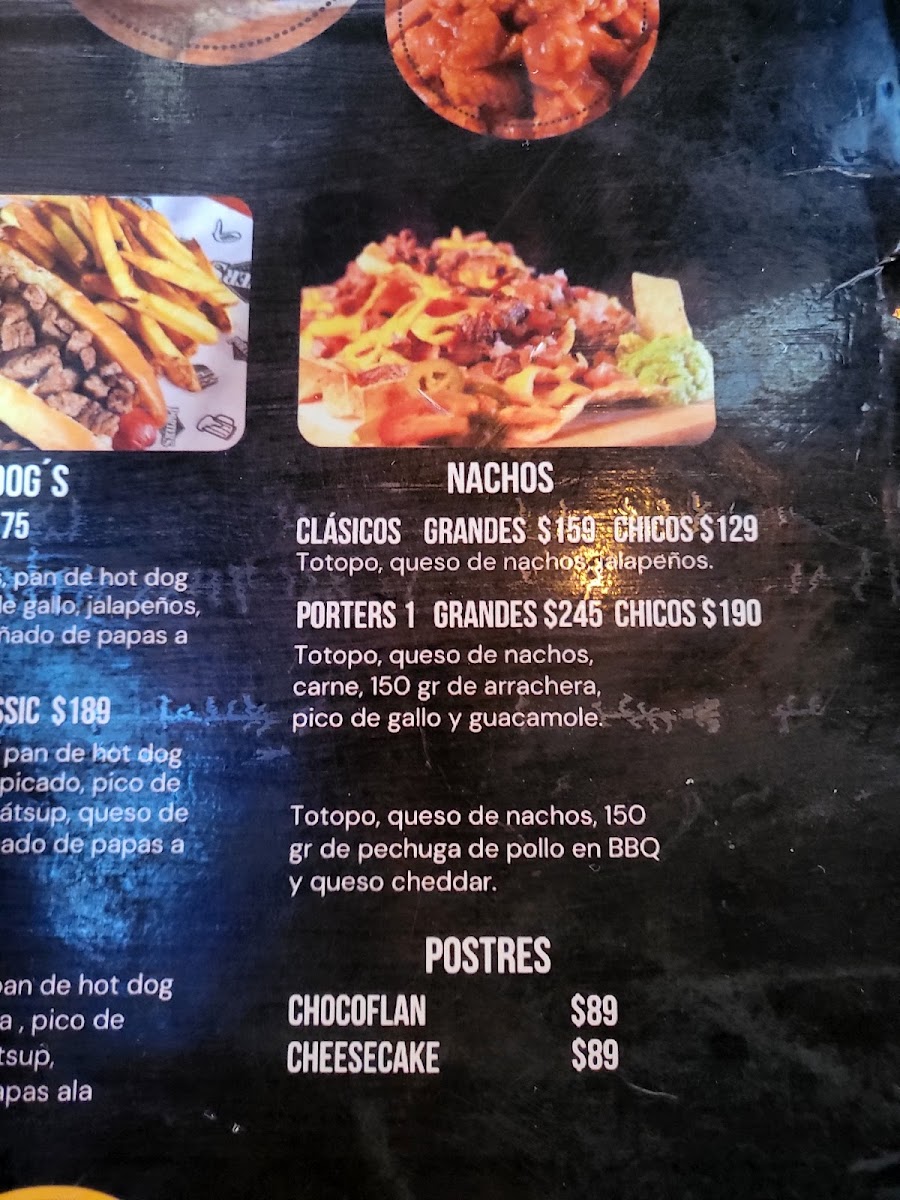 Welcome to Porters Sport Bar, a vibrant dining destination nestled in the heart of Tijuana's Playas Coronado. This spot is perfect for sports enthusiasts and food lovers alike. Dive into their exciting menu featuring mouthwatering Nachos, with options like the hearty Nachos Porter’s topped with arrachera and guacamole, starting at just MX$270.00.